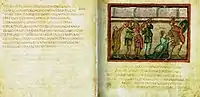 | Евангелие Барберини, лист 125 | Библия Сан-Паоло-фуори-ле-Мура | «Тотила разрушает Флоренцию», лист 36 | «Менологий Василия II», около 985 года |