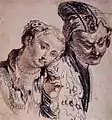 Выдающийся колорист, Ватто был неутомимым рисовальщиком и выработал свой особенный графический стиль. Как правило, он пользовался сангиной и сочетал её со свинцовым или итальянским карандашом (чёрным мелом), что позволяло и в рисунке добиться живописных эффектов (сангина даёт теплый тон, а карандаш — холодный) и особо трепетной фактуры в сочетаниях тонкой силуэтной линии и подчеркнуто рельефной растушёвки. Ватто делал множество подготовительных штудий и набросков к картинам, причем одного и того же персонажа часто рисовал с разных ракурсов. Собрание его рисунков свидетельствует о том, что, обладая исключительной наблюдательностью, он искал в натурной форме разнообразных оттенков содержания и в бесконечных вариациях поз, движений, жестов довёл свою технику до виртуозности. В то же время именно подготовительные рисунки Ватто дают возможность понять, насколько каждый жест, поворот головы, складка одежды персонажей его картин становились плодом аналитического поиска наиболее выразительной композиции.