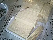 Ва́фля (от нем. Waffel) — разновидность тонкого сухого печенья с оттиском на поверхности. Выпекается из взбитого жидкого теста в специальных формах. Тесто состоит из муки, яиц, сахара (в сладких вафлях) и сливок.