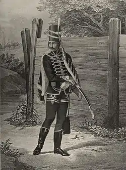 - Илл. 631. Вахмистр Венгерского Гусарского полка, с 1776 по 1783 год // Историческое описание одежды и вооружения российских войск, с рисунками, составленное по высочайшему повелению : в 30 т., в 60 кн. / Под ред. А. В. Висковатова. — Т. 5.