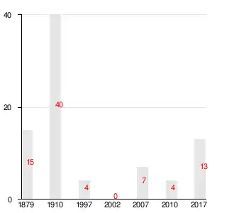 Число жителей по семейным спискам 1879 г.: 8 м. п., 7 ж. п.; по приходским сведениям 1879 г.: 8 м. п., 7 ж. п[3].