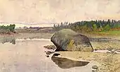 Почти все произведения Вахрушова-пейзажиста связаны с образом реки Сухоны, многочисленные виды окрестностей которой были написаны им во все времена года[1]. Образ северной реки нашёл своё воплощение в лучших пейзажах художника — «На реке Сухоне» (1910 год), «Дедов остров», «Хмурый осенний день» и другие картины.