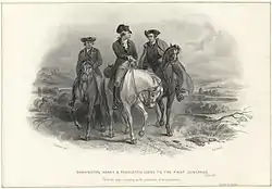 5 августа 1774 года Вашингтон стал одним из семи делегатов, которые должны были представлять Вирджинию на Первом Континентальном Конгрессе. Он получил чуть меньше голосов, чем Пэйтон Рэндольф, и больше, чем Патрик Генри. 30 августа Генри и Эдмунд Пендлтон провели ночь в Маунт-Вернон, откуда утром отправились в Филадельфию. Они прибыли 4 сентября. Вашингтон не принял активного участия в работе, оставаясь в основном наблюдателем. Он оставался в Конгрессе до прекращения его работы 26 октября. В марте 1775 года он посетил Второй Вирджинский Конвент в Ричмонде, который одобрил выступление своих делегатов на Конгрессе. На выборах делегатов на Второй Континентальный Конгресс он снова победил, вновь набрав больше голосов, чем Патрик Генри. 20 апреля произошёл «Пороховой инцидент»: губернатор попытался конфисковать запасы пороха у вирджинских ополченцев, что вызвало бурный протест и попытку нападения на дворец губернатора. Вашингтон велел пяти вирджинским ротам, которыми командовал, воздержаться от участия в конфликте[52].