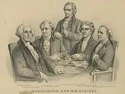 В 1789 году Джордж Вашингтон был единогласно избран первым президентом США, а в 1792 году его переизбрали на второй срок. Будучи главой государства, он содействовал укреплению Союза, претворению в жизнь принципов конституции и строительству столицы Соединённых Штатов. Занимался формированием центральных органов власти и системы управления, создавал прецеденты института президентов, поощрял развитие экономики. Поддерживал дружественные отношения с Конгрессом. В 1794 году подавил первое в истории США восстание против государственной власти. Во внешней политике избегал вмешательства в дела европейских государств. Отказался баллотироваться на президентский пост в третий раз.