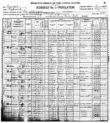 - Изображение страницы переписи населения, содержащей имя Джорджа Вашингтона; Перепись населения США (1900); Статен-Айленд; Нью-Йорк