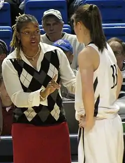 ![]() Коквис Вашингтон на тренерском мостике «Пенн Стэйт Леди Лайонс» даёт наставления Мэгги Лукас во время матча против «Делавэр Файтин Блю Хенс» (19 декабря 2010 года) | ||||||||||