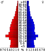 Население округа по возрастному диапазону по данным переписи 2000 года распределилось следующим образом: 25,00 % — жители младше 18 лет, 15,30 % — между 18 и 24 годами, 30,20 % — от 25 до 44 лет, 19,50 % — от 45 до 64 лет и 9,90 % — в возрасте 65 лет и старше. Средний возраст жителей округа составил 31 год. На каждые 100 женщин в округе приходилось 100,40 мужчин, при этом на каждых сто женщин 18 лет и старше приходилось 98,70 мужчин также старше 18 лет.