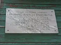 25 августа 1954 года именем красноармейца А. Е. Ващенко в Волгограде названа улица[13][к 5]. 24 сентября 1983 года по адресу улица Ващенко, дом 47 была открыта мраморная доска: «Улица названа именем Ващенко Алексея Егоровича, автоматчика 272-го полка 10-й дивизии НКВД, 5 сентября 1942 года совершившего героический подвиг у стен Сталинграда»[14].