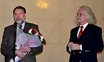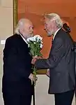 ![]() Гавриил Харитонович Ващенко на юбилейной выставке в Национальном художественном музее Беларуси, на фоне своей картины, 12 декабря 2013 года. | ||||