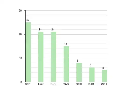 | 1931[3] | 1959пер.[4] | 1970пер.[4] | 1979пер.[5] | 1989пер.[6] | 2001пер.[7] | 2011пер.[8] |