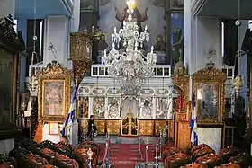 Интерьер церкви украшен работами известных греческих иконописцев.