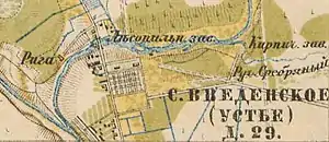 ВВЕДЕНСКОЕ (УСТЬЕ тож) — село генерал-майора Кожина, по просёлочной дороге, число дворов — 19, число душ — 52 м. п.(1856 год)[9]