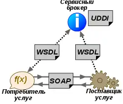 - UDDI: Универсальный интерфейс распознавания, описания и интеграции (Universal Discovery, Description and Integration). Каталог веб-служб и сведений о компаниях, предоставляющих веб-службы во всеобщее пользование или конкретным компаниям. Пока UDDI существуют, однако, только в небольших фирменных сетях и ещё не нашли широкого распространения в открытом интернете;