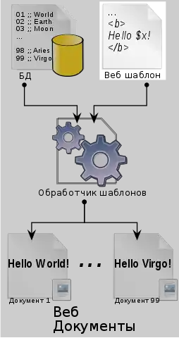 - Шаблоны википедии — это хороший пример: вики-движок это обработчик шаблонов, и некоторые вики-шаблоны используют набор статей в качестве содержания.