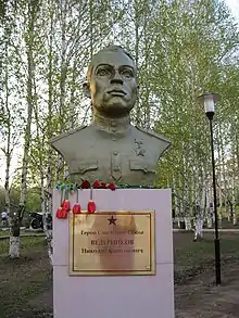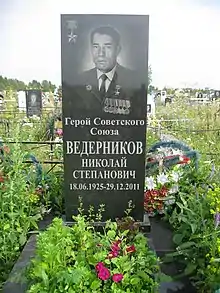 ![]() Бюст Николая Степановича Ведерникова в городе Чернушка | ![]() Могила Николая Степановича Ведерникова на кладбище города Чернушка |