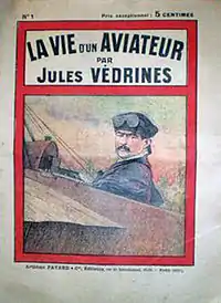 | Открытка 1912 года в память о посещении Жюлем Ведрином Лиму. | «Кодрон» Жюля Ведрина на крыше «Галереи Лафайет». | Жюль Ведрин. «Жизнь лётчика. Сам о себе».. |