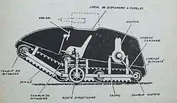 Это уже действительно было нечто подобное танку с экипажем в 4 человека и «броневой рубкой». Последняя состояла из трех независимо вращающихся поясов с пулеметом «Максим» в каждом. Еще один «Максим» крепился в лобовом листе корпуса. Идея движителя осталась прежней, добавились только колеса на концах заднего барабана. Согласно представленной им 17 января 1917 года документации и масштабной модели это был действительно танк с колесно-гусеничным ходом.