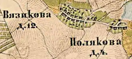 Согласно 10-й ревизии 1856 года крестьяне смежных деревень Вязиково и Поляково были государственными[5].