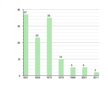 | 1931[2] | 1959пер.[3] | 1970пер.[3] | 1979пер.[4] | 1989пер.[5] | 2001пер.[6] | 2011пер.[7] |