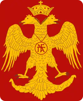 - После 1057 года н. э. Византийская империя начала использовать в качестве символа двуглавого орла, как свой символ. Справа — символ, использовавшийся династией Палеологов.
