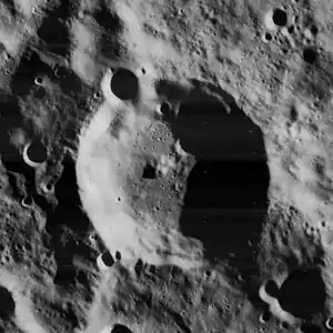Ближайшими соседями кратера являются кратер Гилл на северо-западе; кратер Хэйл на юге, а также кратер Неймайер на западе-юго-западе[2]. Селенографические координаты центра кратера 68°53′ ю. ш. 90°43′ в. д.68,88° ю. ш. 90,71° в. д., диаметр 52,4 км[3], глубина 4,63 км[4].