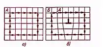 Мерой искажения служит так называемый вектор Бюргерса. Он получается, если в реальном кристалле обойти контур, который был бы замкнутым в идеальном кристалле (например, в примитивном кристалле кубической сингонии это контур «n связей вверх, m связей вправо, n связей вниз, m связей влево»), заключив дислокацию «внутрь» контура. Как видно на рисунке, в реальном кристалле контур окажется незамкнутым. Вектор b, который нужен для замыкания контура, называется вектором Бюргерса[1].