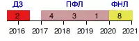 | 2020/21 | ФНЛ | 8 из 22 | 42 | 18 | 12 | 12 | 54-46 | 66 | гр. этап (1/16) | Артём Максименко — 9 голов | |