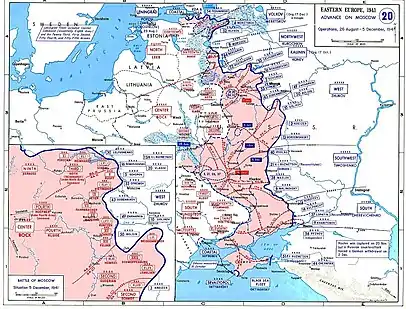 - 4-я немецкая армия и 2-я танковая группа против 4-й советской армии в центре;