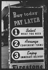 К концу 1920-х годов стало очевидно, что автопроизводители (пере)насытили доступный им внутриамериканский рынок. Потребительский кредит или «покупка в рассрочку» (англ. installment buying), был впервые применён корпорацией «General Motors» ещё в 1919 году — с помощью специально созданной компании «General Motors Acceptance Corporation». Это стало ещё одной попыткой расширить рынок сбыта, поскольку покупатели были избавлены от необходимости платить полную цену наличными деньгами непосредственно в момент покупки. «Взрывной» рост рынка рекламы, который в современном виде возник около 1920-х годов, ещё более усилил опасения специалистов, что границы «естественного спроса» были уже достигнуты. Одна только фирма «General Motors» ежегодно тратила около 20 миллионов долларов на рекламу — в попытке развить у потребителей желание потреблять больше. Хотя кредиты и реклама на некоторое время поддержали продажи автомобилей, но уже тогда стало ясно, что без новых (зарубежных) рынков или значительного перераспределения покупательной способности внутри США — с включением в оборот сельской половины страны — границы роста были либо близки, либо достигнуты[14].