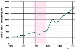 Вели́кая депре́ссия (англ. Great Depression) — мировой экономический кризис, начавшийся 24 октября 1929 года с биржевого краха в США и продолжавшийся до 1939 года[3][4] (наиболее остро с 1929 по 1933 год)[5]. 1930-е годы в целом считаются периодом Великой депрессии.
