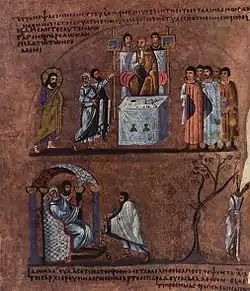 - Мф. 26:57-75 — суд первосвященника Каиафы, троекратное отречение Петра (в изложении Матфея),