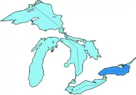 Вели́кие озёра (англ. Great Lakes, фр. Grands Lacs, иногда также Великие Лаврентьевские озёра) — система пресноводных озёр в Северной Америке, на территории США и Канады (озеро Мичиган находится целиком в США, по остальным озёрам и соединяющим их коротким рекам проходит граница между США (⅔ акватории) и Канадой (⅓ акватории озёр)[1]). Включает ряд крупных и средних водоёмов[2], соединённых реками и проливами. К собственно Великим озёрам относят пять крупнейших: Верхнее, Гурон, Мичиган, Эри и Онтарио, хотя иногда в них включают и озеро Сент-Клэр, они образуют самую большую по площади группу пресноводных озёр на Земле (общая площадь 244 106 км², общий объём 22 671 км³), содержащую 21 % поверхности в мире пресной воды (и 84 % запасов пресной воды Северной Америки)[3][4][5]. С ними связаны несколько средних озёр, важнейшими из которых являются: Сент-Мэрис, Маниту, Нипигон, Ниписсинг. Озёра относятся к бассейну Атлантического океана, сток по реке Святого Лаврентия.
