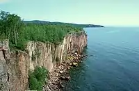 Ве́рхнее о́зеро (англ. Lake Superior, оджибве Gichigami — большая вода) — расположено севернее всех и выше всех над уровнем моря. Это озеро является самым крупным и глубоким в системе Великих озёр и самым большим по площади пресноводным озером в мире (82,7 тысячи км²)[11] — больше него лишь Каспийское море. Озеро располагается на границе Канады и США — с севера располагается канадская провинция Онтарио, на западе и юге — американские штаты Миннесота, Висконсин и Мичиган. Верхнее озеро располагается на высоте 183 м над уровнем моря в котловине, образованной ледником в древних кристаллических породах Канадского щита. Максимальная глубина — 406 м, объём воды — 11,6 тысячи км³. Площадь бассейна вместе с площадью озера составляет 207,2 тыс. км². Крупных притоков у озера нет. Береговая линия изрезана, имеются крупные заливы — Кивино, Уайтфиш. Крупнейшие острова: Айл-Ройал, Сент-Игнас, Мишипикотен и острова Апостл. На севере берега высокие (до 400 м) и скалистые, а на юге — в основном низменные и песчаные. Сток по реке Сент-Мэрис длиной 112 км осуществляется в озеро Гурон. Вода в озере холодная и прозрачная. Температура центральной части озера даже летом не превышает 4 °C, а зимой не замерзает из-за штормов. Прибрежная зона покрыта льдом в среднем с начала декабря по конец апреля[12]. Озеро богато рыбой: сиг, форель, осётр и другими видами, а также используется для хозяйственной деятельности в целях обеспечения судоходства и выработки гидроэлектроэнергии. Верхнее озеро является важным звеном водного пути, проходящего по Великим озёрам и проложенного человеком по шлюзованным каналам у города Су-Сент-Мари в обход порогов на реке Сент-Мэрис. Главные порты: Дулут, Сьюпириор, Ашленд (США), Тандер-Бей (Канада)[12].
