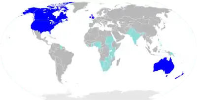 Валлийский и шотландский кельтский языки также используются небольшими группами людей в мире за пределами Великобритании — например, на шотландском кельтском разговаривает некоторые количество жителей Новой Шотландии и Канады (особенно на острове Кейп-Бретон)[69], а некоторое количество жителей аргентинской провинции Чубут (Патагония) разговаривает на валлийском[70].