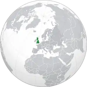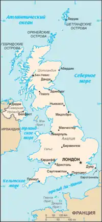 Великобрита́ния (русское название происходит от англ. Great Britain [ˌɡreɪt ˈbrɪtn]), или Соединённое Короле́вство (United Kingdom [jʊnaɪtɪd kɪŋdəm], сокращённо: UK)[6], полная официальная форма — Соединённое Короле́вство Великобрита́нии и Се́верной Ирла́ндии[6][1] (англ. The United Kingdom of Great Britain and Northern Ireland) — островное государство на северо-западе от континентальной Европы[7][6].