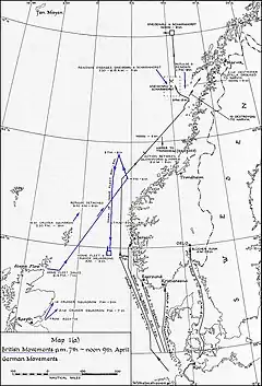 8 апреля 1940 года 4 британских эсминца поставили минное заграждение у входа в залив, ведущий к норвежскому порту Нарвик. Правительство Норвегии вручило Англии ноту протеста.