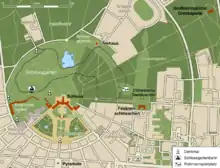Усыпальница неприметно расположена на лиственничной аллее посреди леса Хардтвальд на краю Фазанового сада между проспектом Аденауэрринг (Adenauerring) и улицей Клостервег (Klosterweg) по направлению к общежитию Hans-Dickmann-Kolleg. Она относится к самым живописным памятникам истории Бадена.