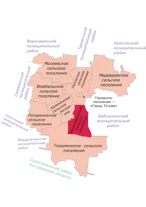 - на западе с Калининским сельским поселением (граница проходит по реке Сухона).