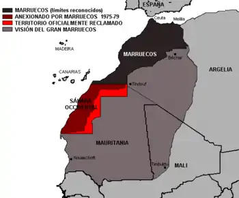 Хотя правительство Марокко не имеет территориальных претензий к Мавритании и Алжиру, оно продолжает контролировать территорию Западной Сахары. По этой причине Марокко не входит в Организацию африканского единства (ОАЕ), одним из основополагающих принципов которой является нерушимость постколониальных границ, в то время как Сахарская Арабская Демократическая Республика входит в ОАЕ.