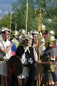 - Конноли П. Римская армия в 160 г. до н.э. // Греция и Рим. Энциклопедия военной истории = Greece and Rome at War. — М.: ЭКСМО-Пресс, 2001. — С. 133. — 320 с. — ISBN 5-04-005183-2.