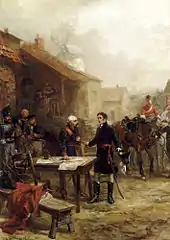 ![]() Портрет герцога Веллингтона кисти сэра Томаса Лоуренса. Написан в 1814 году, за несколько месяцев до битвы при Ватерлоо | |