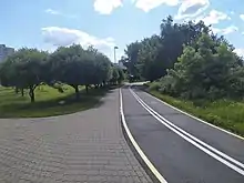 Движение на велосипеде должно осуществляться по велосипедной дорожке, а при ее отсутствии — по обочине, тротуару или пешеходной дорожке, не создавая препятствия для безопасного движения пешеходов. При отсутствии указанных элементов дороги или невозможности движения по ним допускается движение велосипедистов по проезжей части дороги в один ряд не далее 1 метра от ее правого края.[27]Правила дорожного движения: пункт 148, глава 20