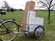Велосипедные прицепы для перевозки грузов обычно представляют собой прицепы на 2-х колёсах планшетного типа, либо с высокими бортиками. Такие велосипедные прицепы позволяют перевозить грузы массой до 45—50 кг. (Но, как показывает практика, могут выдержать и 70 кг.)