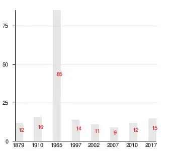 Число жителей по семейным спискам 1879 г.: 5 м. п., 7 ж. п.; по приходским сведениям 1879 г.: 5 м. п., 6 ж. п.[3]