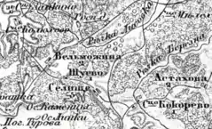 На карте РККА 1923—1941 годов обозначена деревня Вельможино. Имела 3 двора[1].