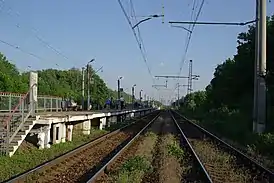 Имеет 2 боковые платформы, которые соединены пешеходным настилом. На платформе производится продажа билетов на пригородные поезда[1]. Билетная касса находится со стороны поселка Вельяминово. Вторая платформа со стороны третьего пути имеет расширение, позволяющее производить посадку и высадку пассажиров с 3-го пути (но оно намного короче основной платформы). Оно было установлено приблизительно в 2002 году, когда из-за ремонта путей в Барыбино было невозможно использование одной из основных платформ. Платформа находится на перегоне между станциями Барыбино и Михнево.