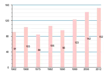| 1962 | 1968 | 1975 | 1982 | 1990 | 1999 | 2006 | 2011 | 2012 |