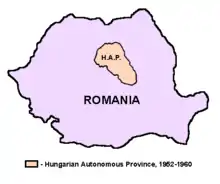 Венгерская автономная область была образована в 1952 году в рамках административно-территориальной реформы 1950 года. Её столицей стал Тыргу-Муреш. Венгерская автономная область была упомянута в румынской конституции сентября 1954 года. На 1954 год из общего числа 2220 школ автономии — 1597 школ были венгерские.