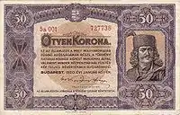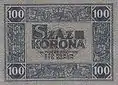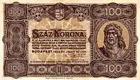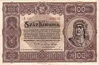 | 100 крон | 119 × 72 мм | Матьяш I | 1 июля 1923 г. | 18 марта 1924 г. | 30 июня 1927 г. | ||