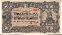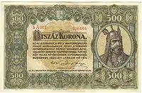 500 крон | 128 × 74 мм | Арпад | 20 июня 1924 г. | ||